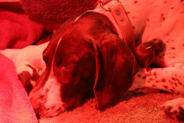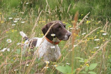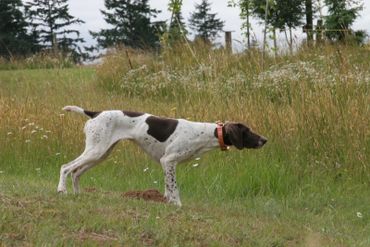 Vida was a sweet housedog and a smart, stylish, cooperative bird dog with high desire, strong prey drive, and excellent conformation. Like most Sharp Shooter's dogs, Vida was pointing, retrieving, backing, and swimming at an early age. She had equal love for searching the field and lying by a warm fire.